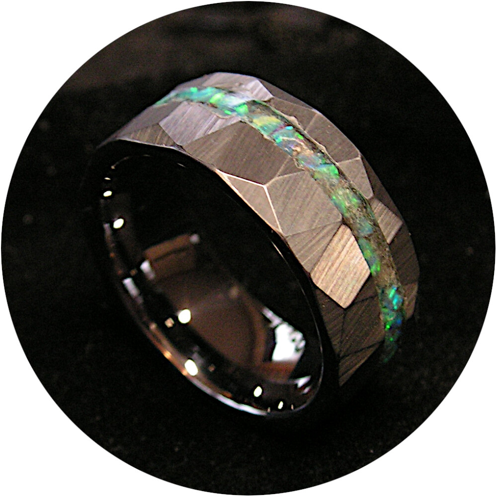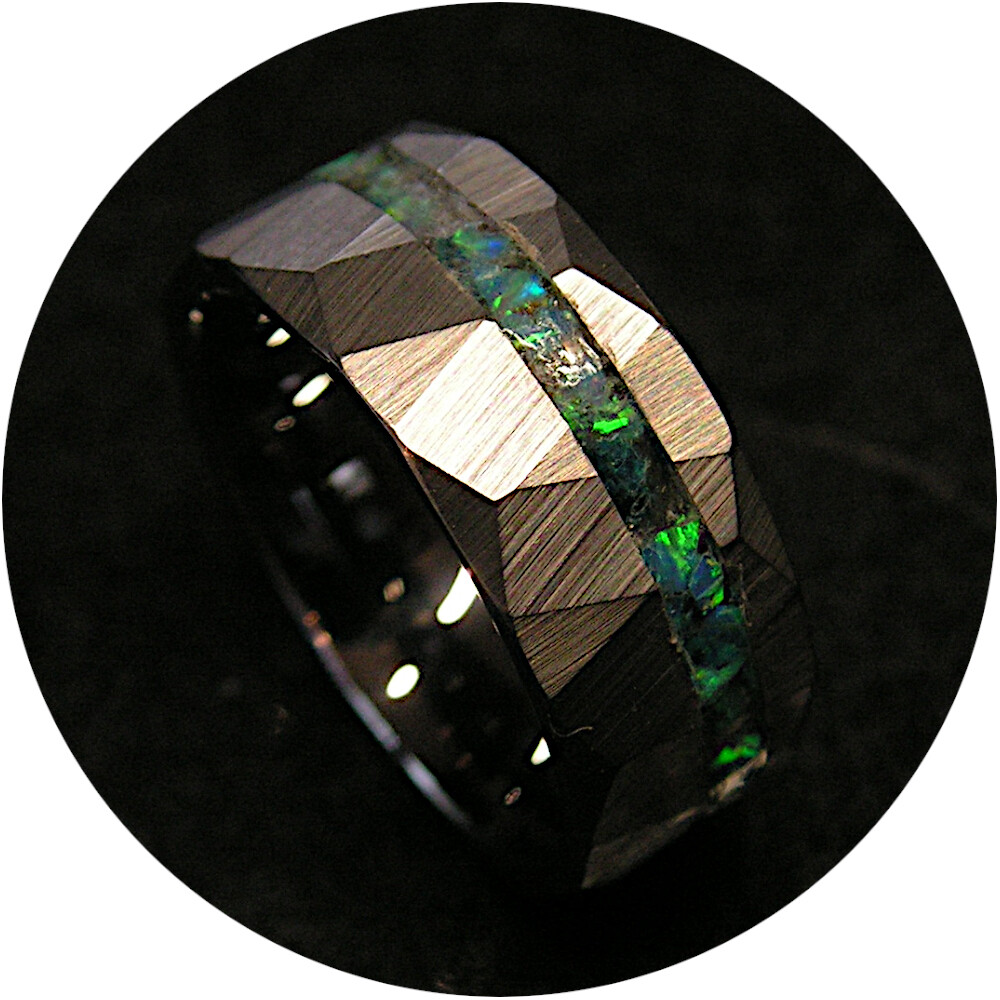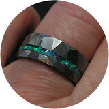 8mm Hammered Tungsten Ring Green Jade Opal Ring!