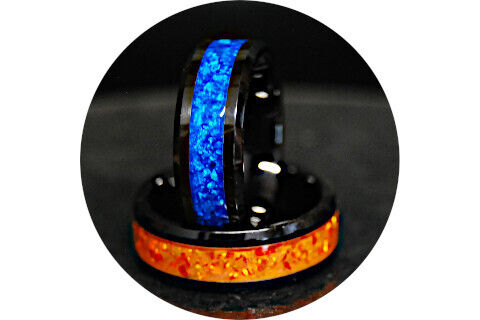 Twin Flame & Yin Yang Themed Rings inlaid with Fire & Ice Opal