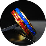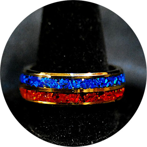 Orange Fire & Blue Ice Crushed Opal Ring inlaid on Gold Plated Tungsten 8mm Band. Twin Flame Ring for Unisex!